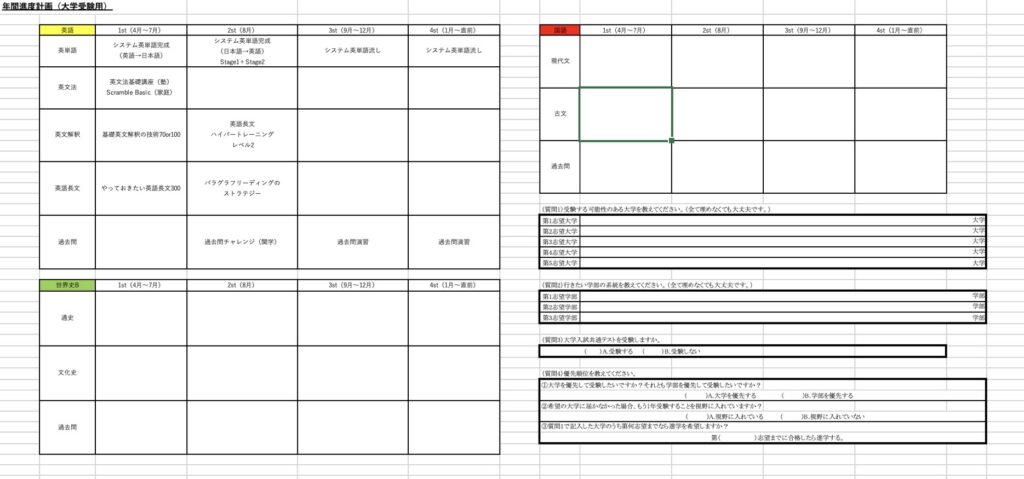 志望校に合格するために、何をしなければならないのかを自分で計画を立てるセルフ・プロットをしています。