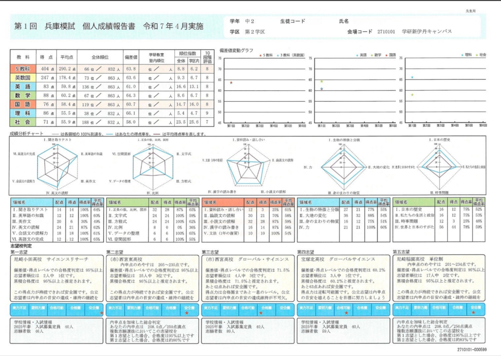 兵庫模試は過去47年・通算300万名に及ぶ模試試験であり県内中学生の学力データから判定します。